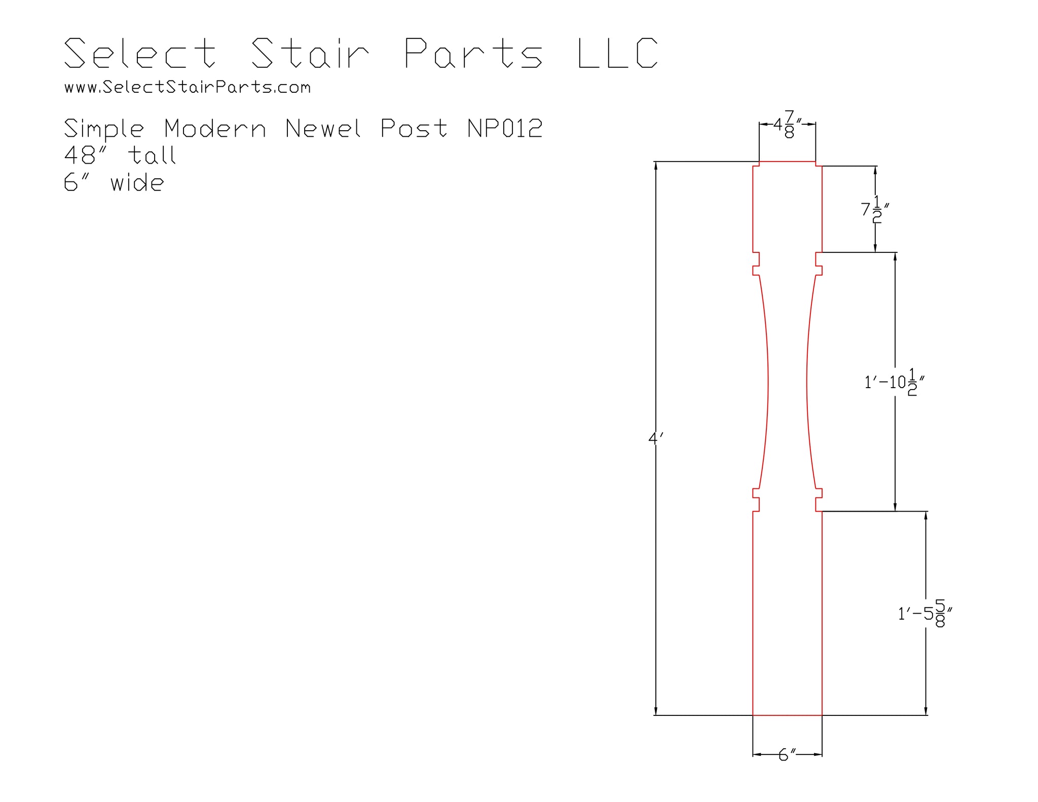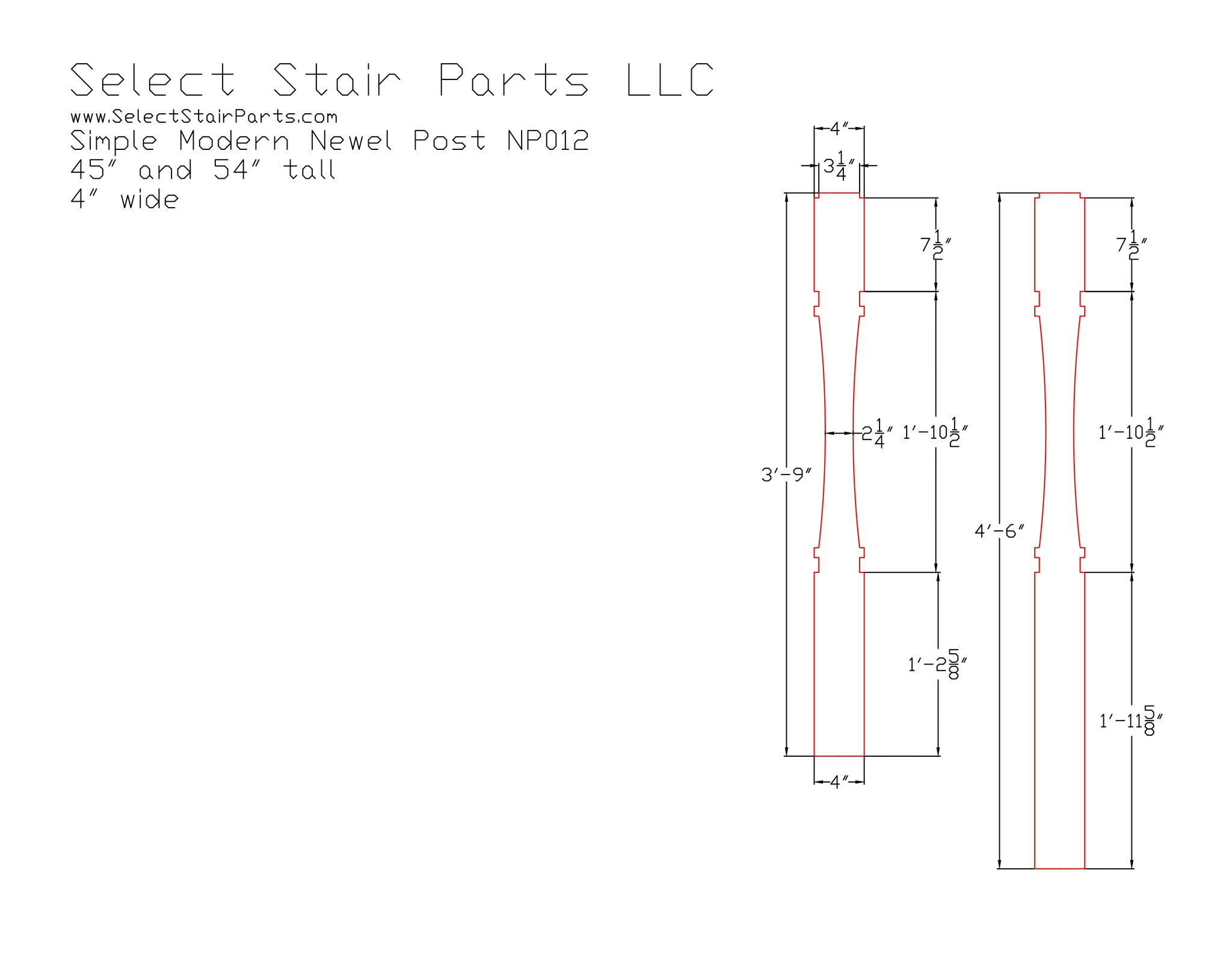 Sleek and understated, this simple modern NP012 newel post features clean lines and a minimalist design. Perfect for contemporary staircases, it blends effortlessly with modern architectural styles while showcasing the natural beauty of wood.